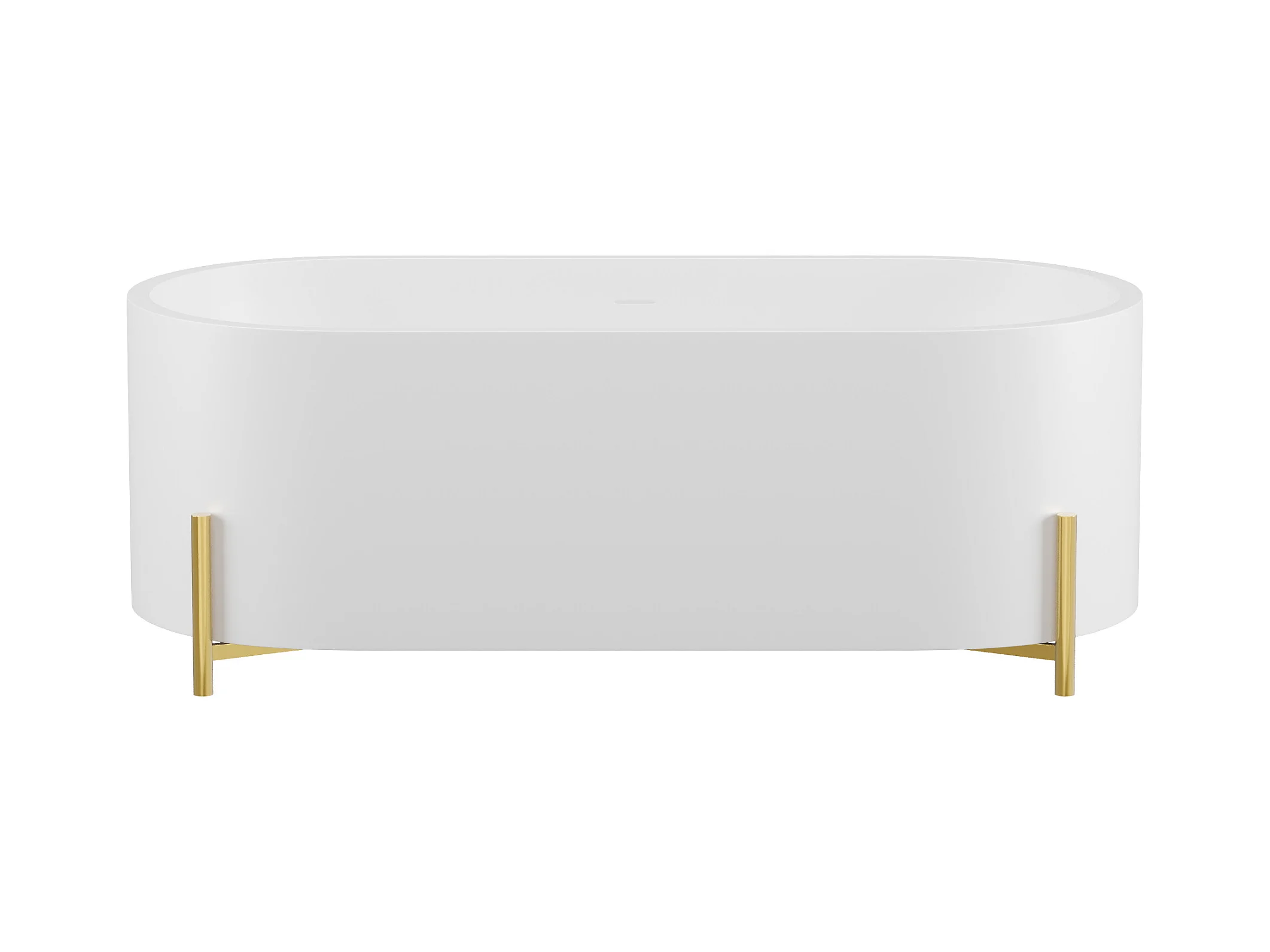 Hvitt ovalt frittstående badekar med gullfot - 160 x 73,5 x 59 cm - ALONSA