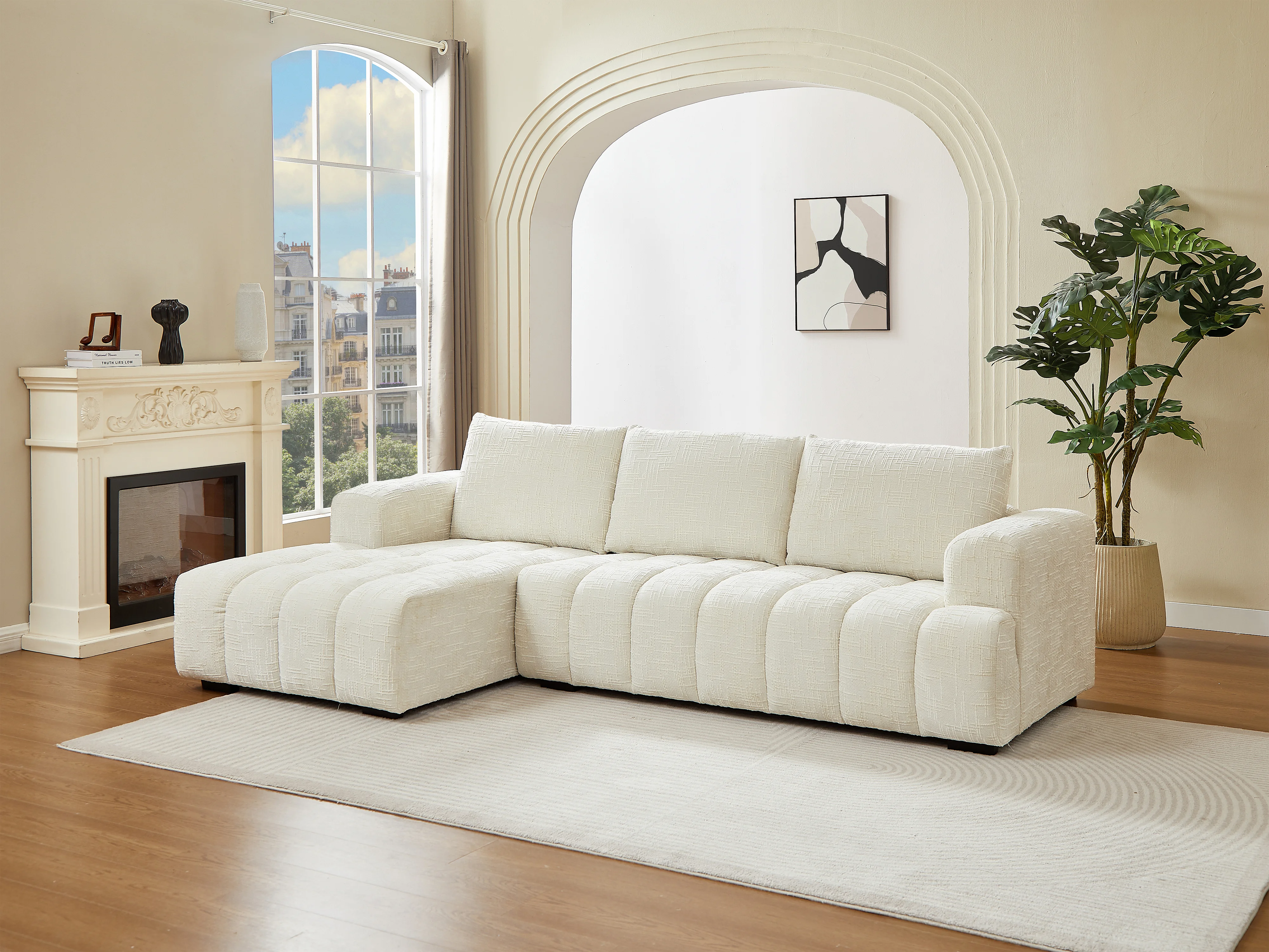Venstre hjørnesofa i beige strukturert stoff BENOLA