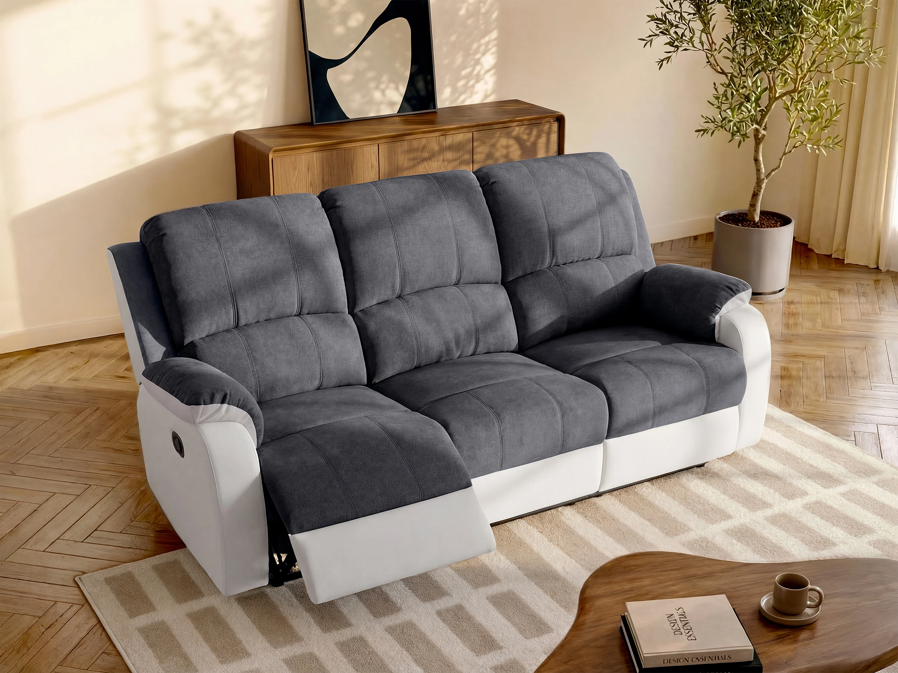 3-seters avslapningssofa i mikrofiber og kunstskinn i grått og hvitt BRODY