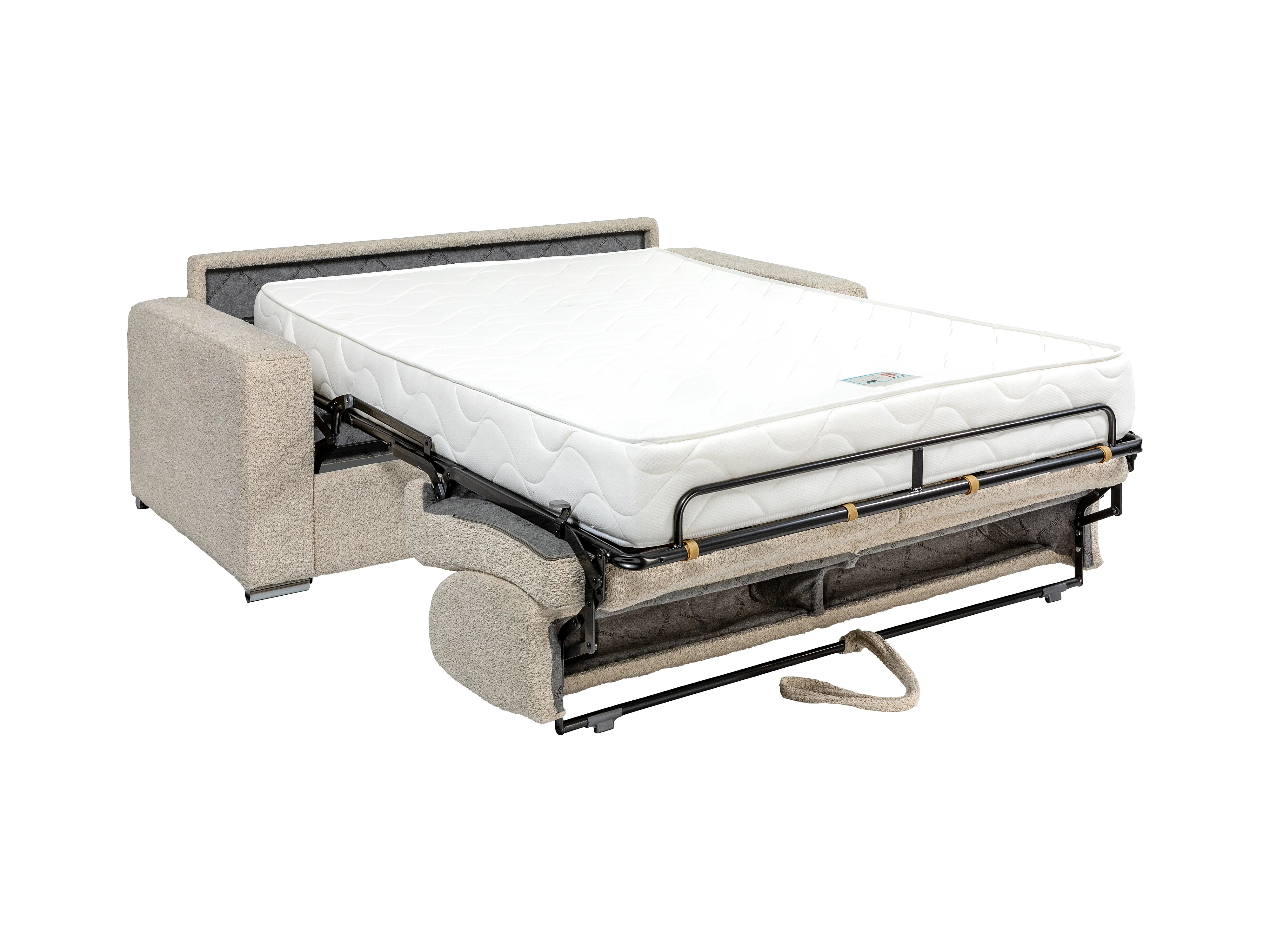 Sofa med 4 plasser uttrekkbar express i beige bouclé-stoff - Soveunderlag med brede lameller 160 cm - Madrass 22 cm med minneskum CALITO