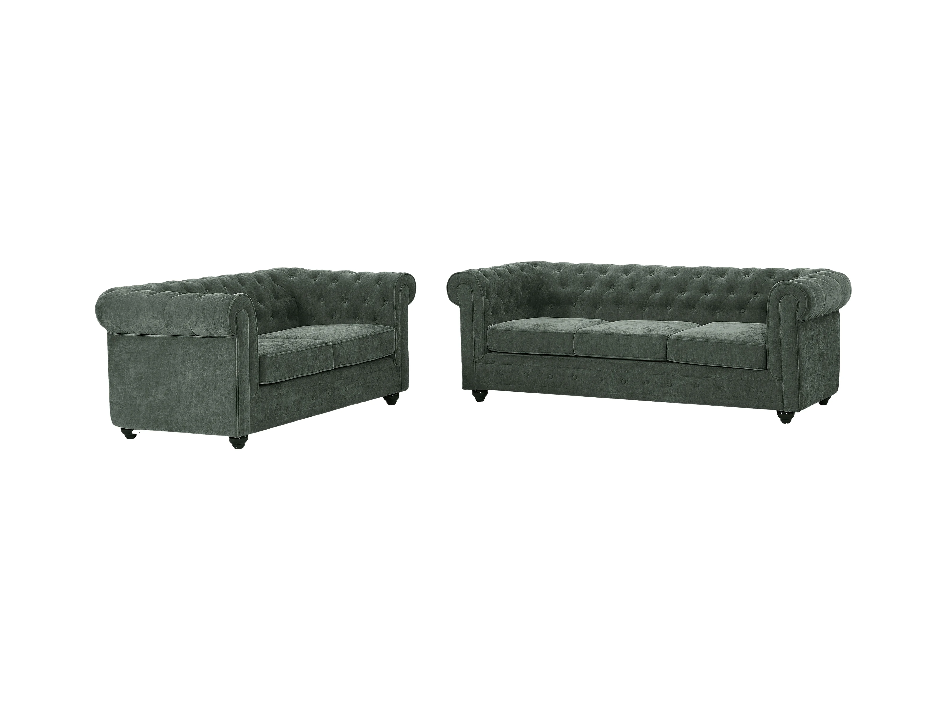 3-seter og 2-seter sofa i grønt stoff CHESTERFIELD