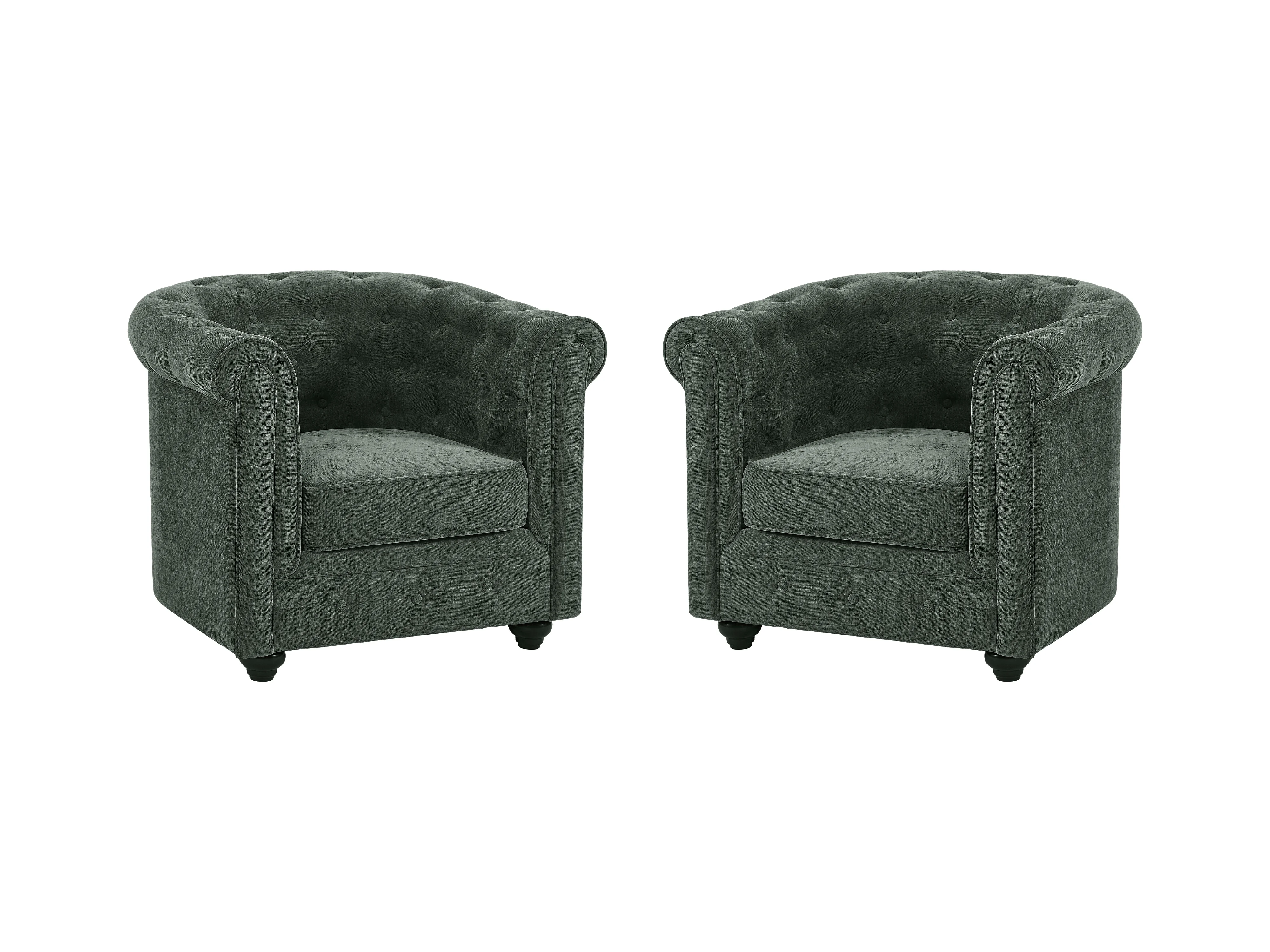 Sett med 2 stoler i grønt stoff CHESTERFIELD