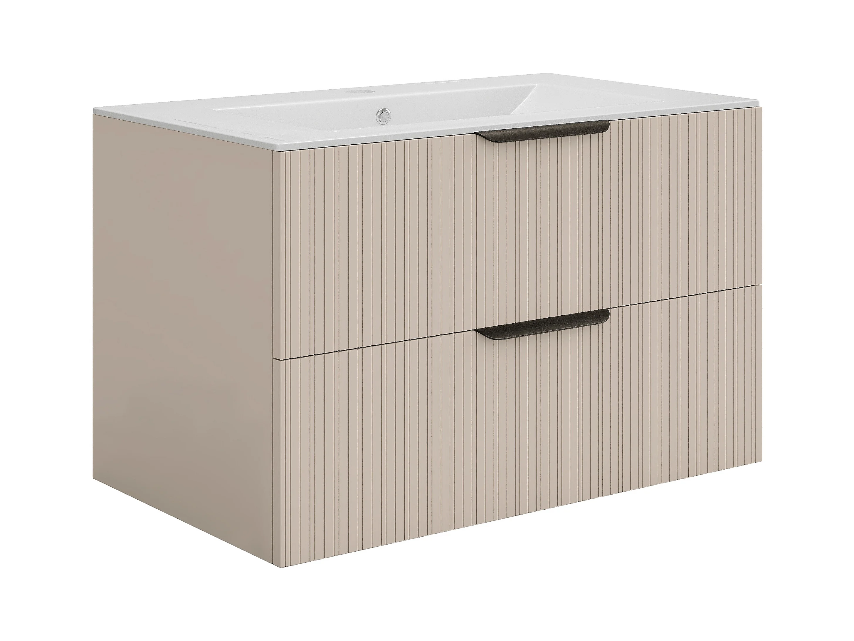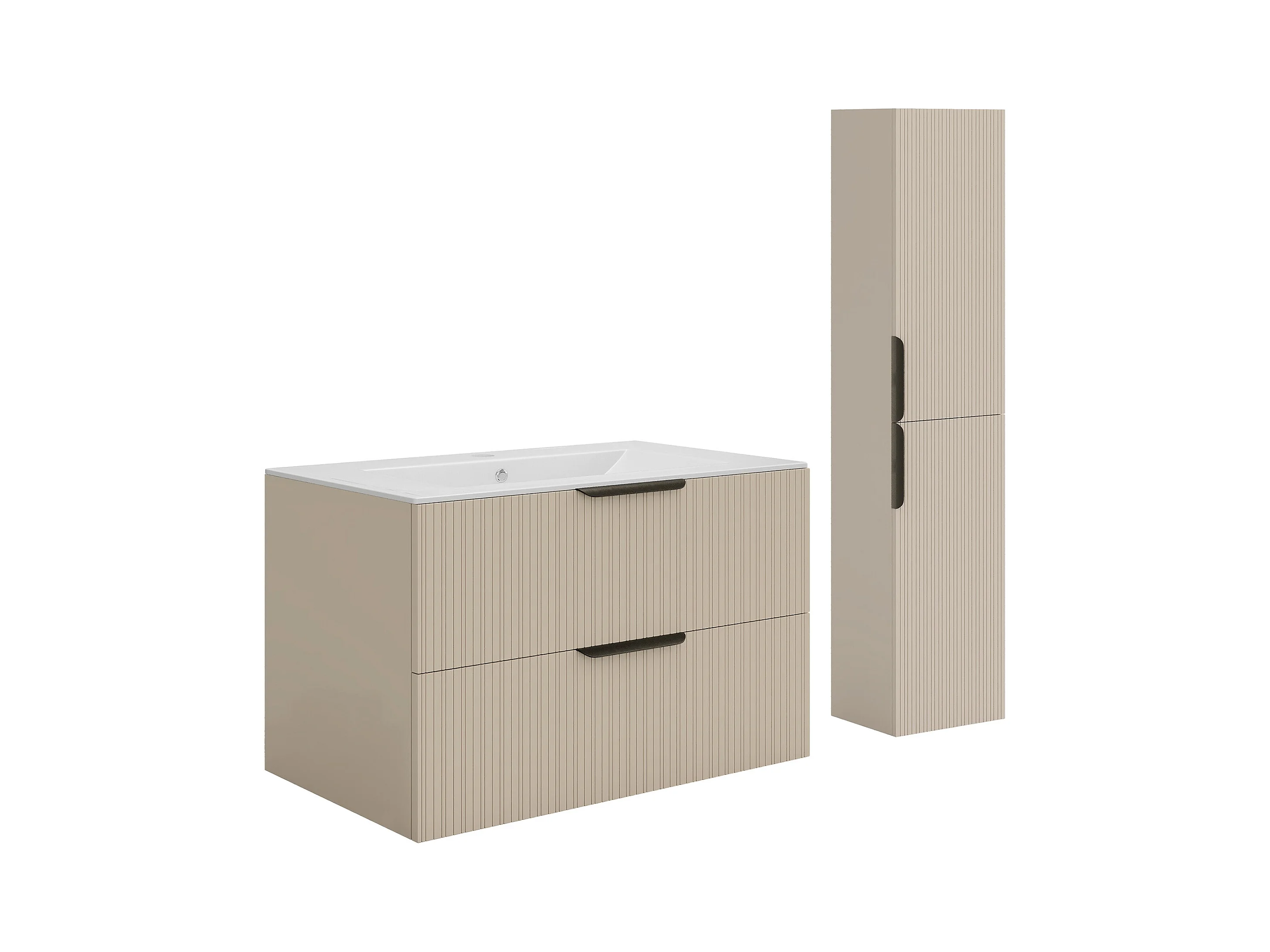 Hengende baderromslås skap med riflet overflate servant Beige - 80 cm - DALIKO