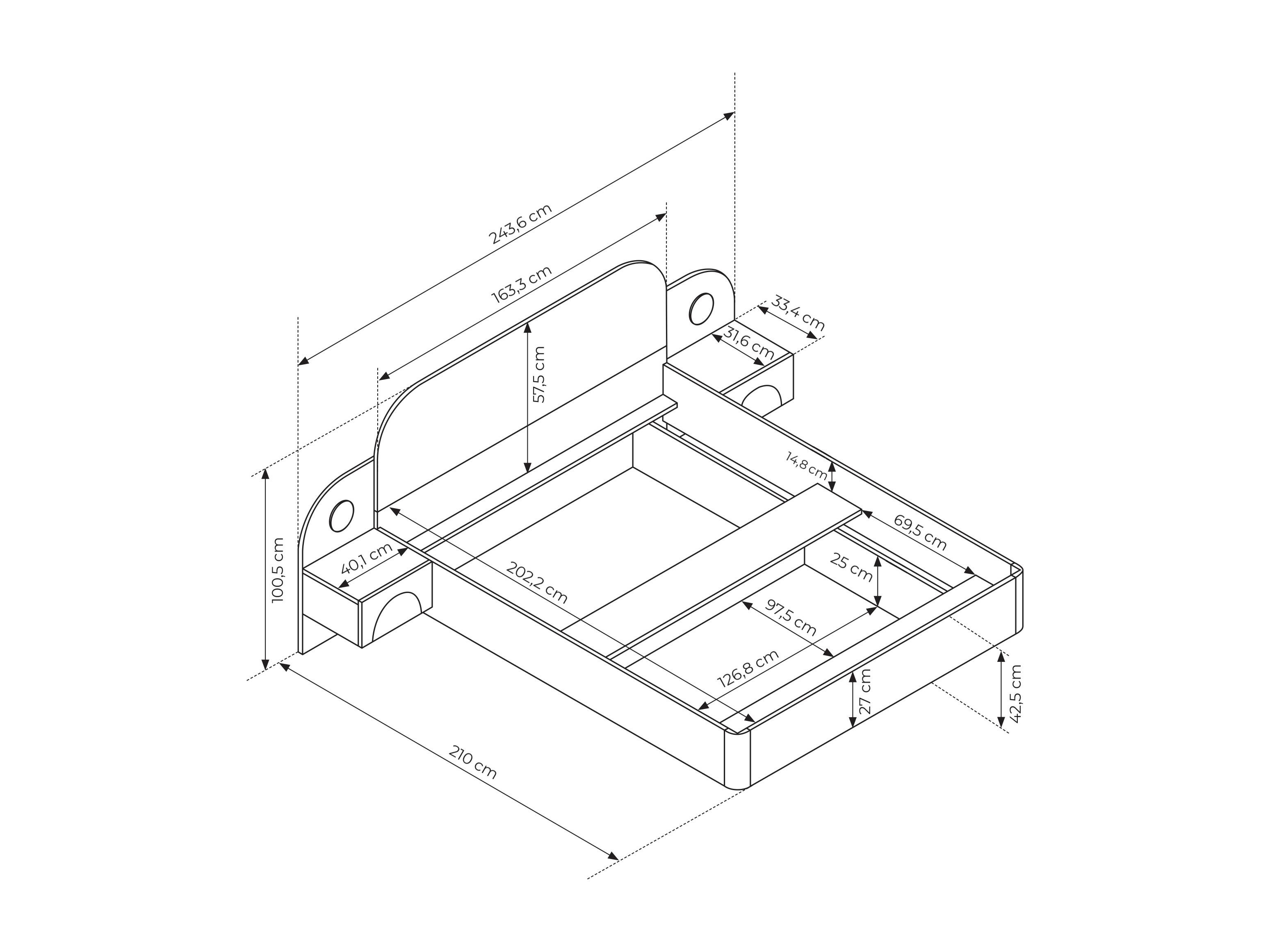 Seng 160 x 200 cm - Med nattbord og LED-lys - Farge: Beige og Naturlig - DARTAGNO