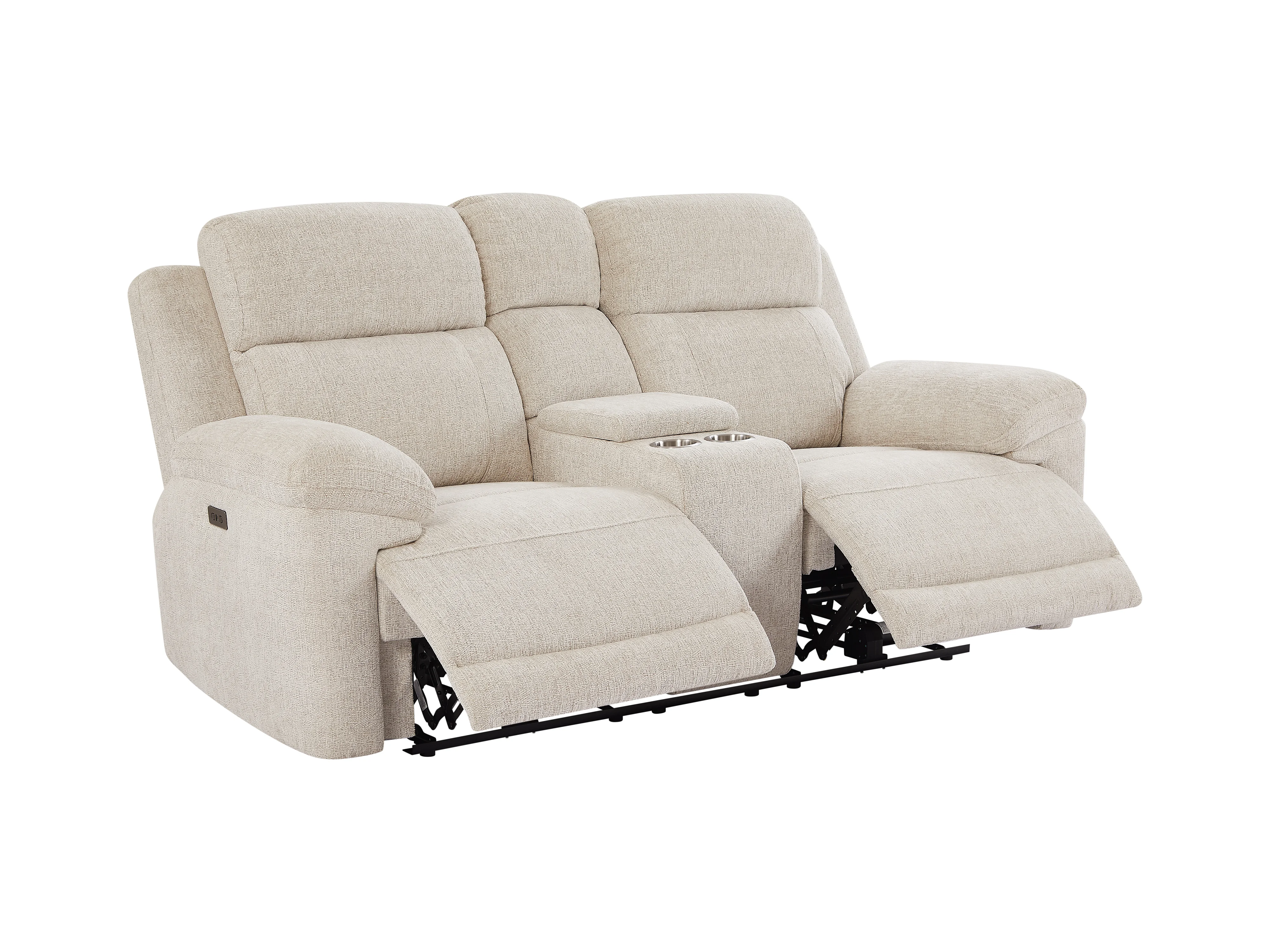 2-seters el-sofa med elektrisk avslapningsfunksjon med brett i stoffmønstret beige KELUNO