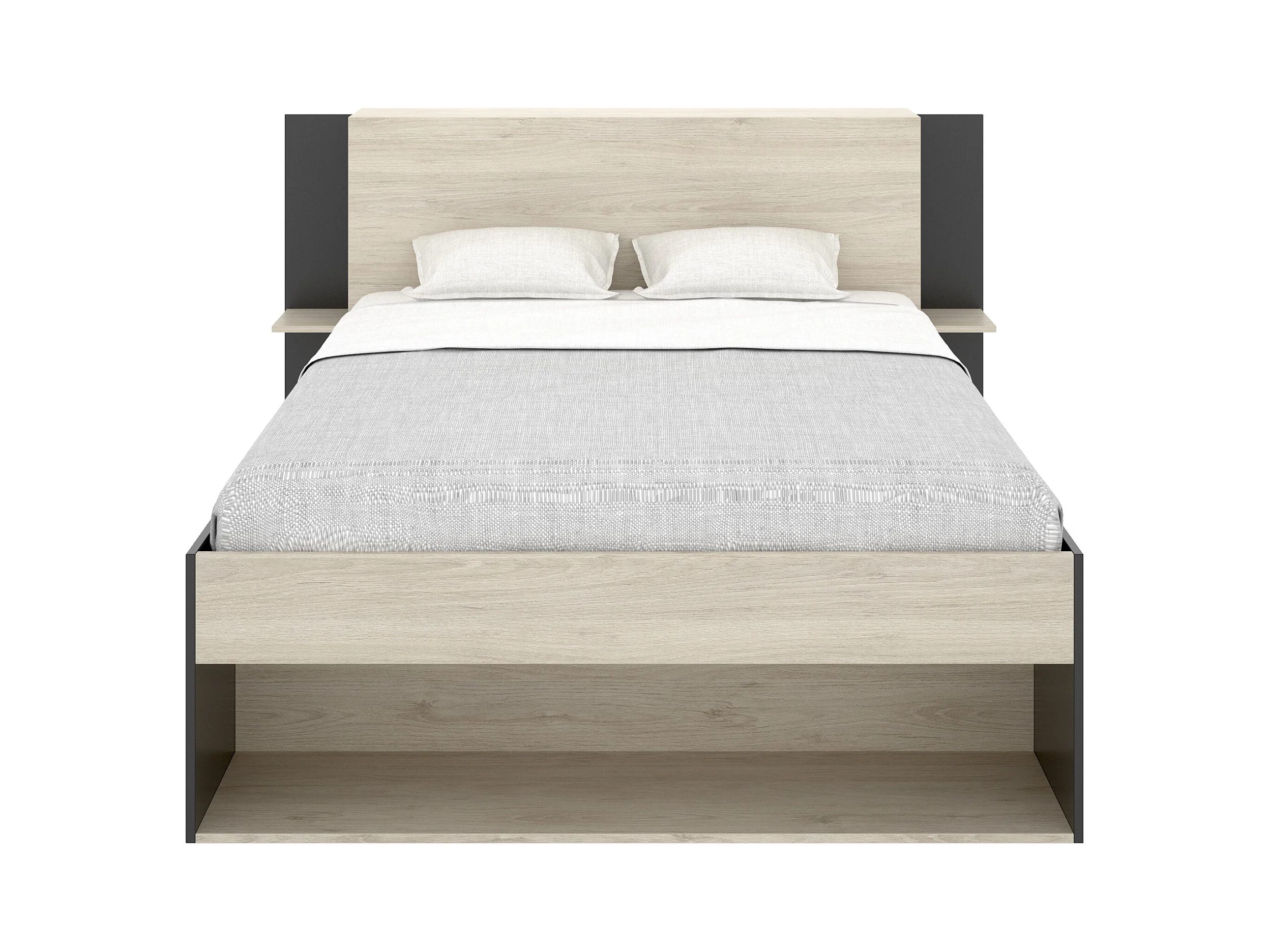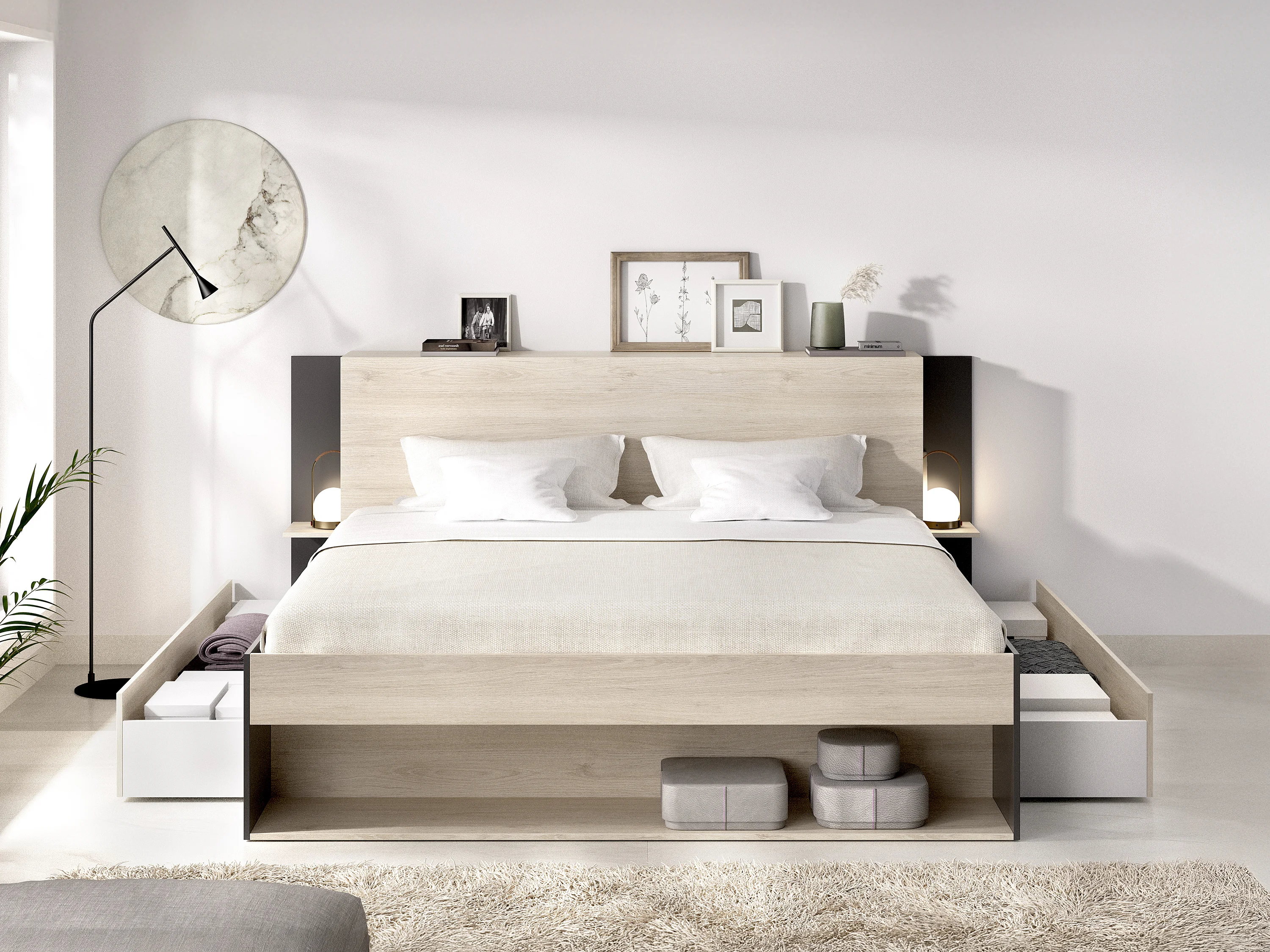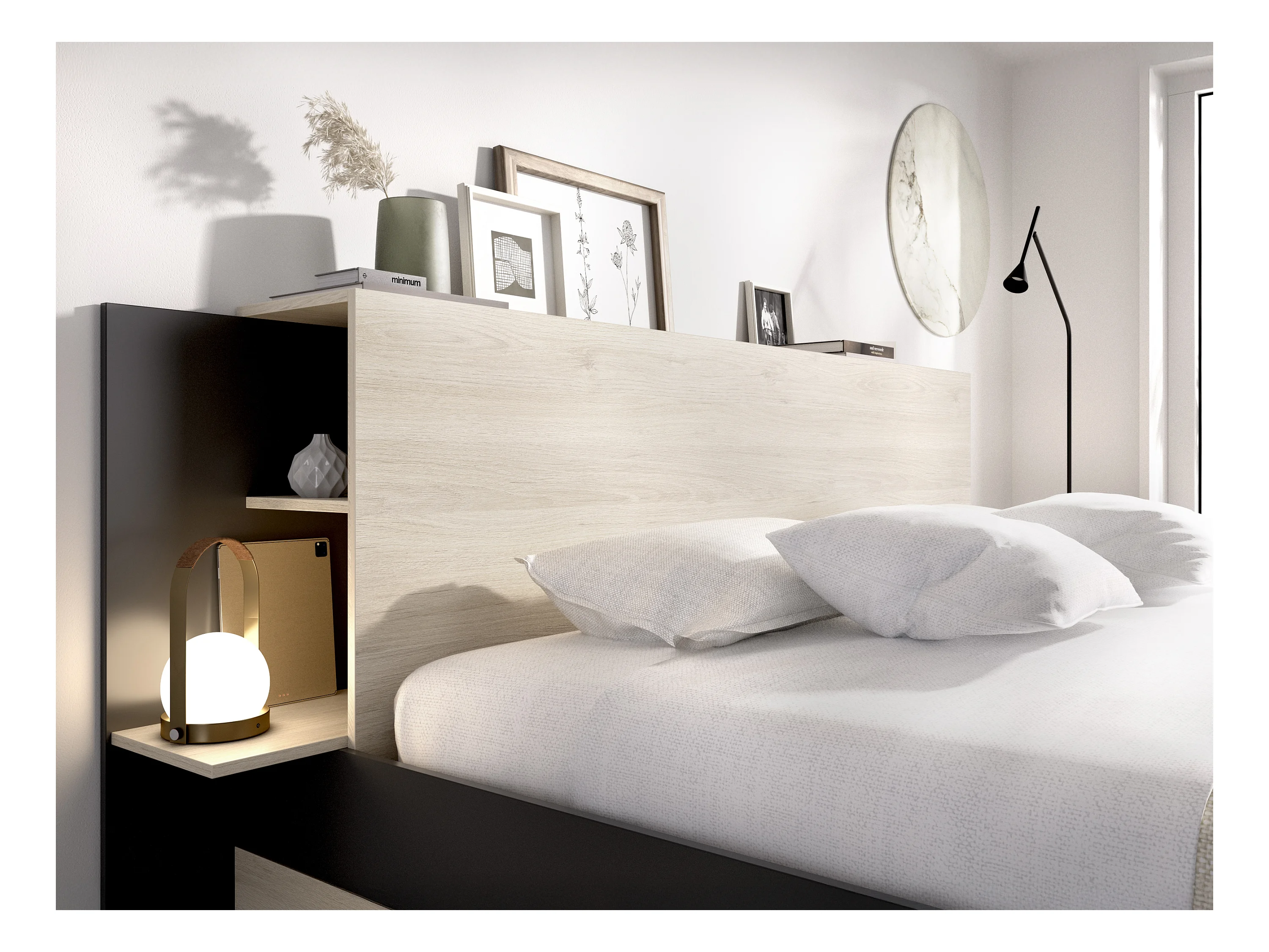 Seng 140 x 190 cm med oppbevaring - Farger: Naturlig og svart + Sengebunn - KEROSIA