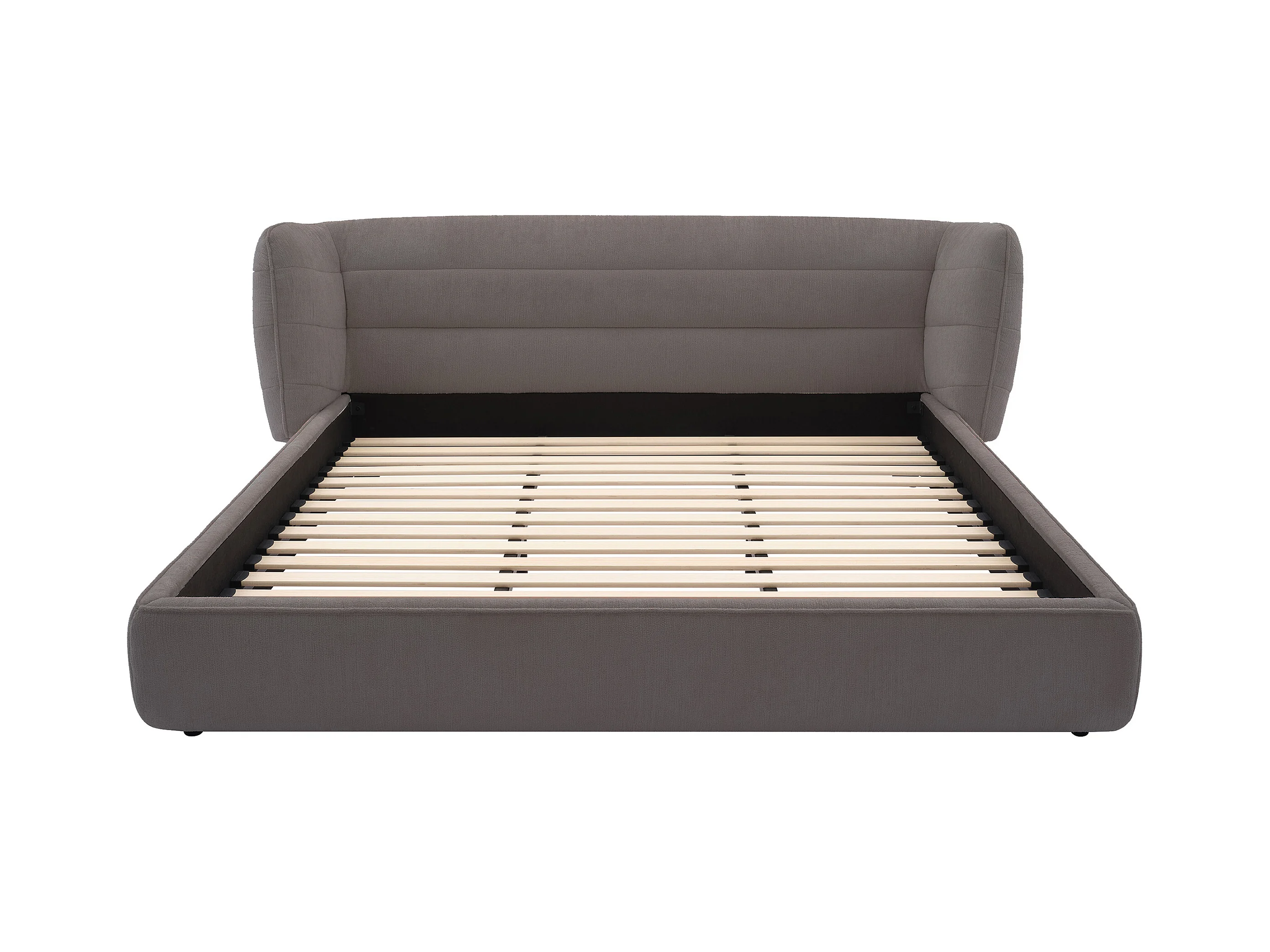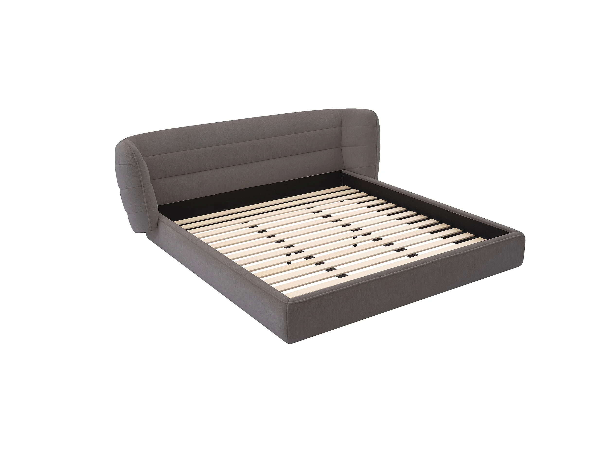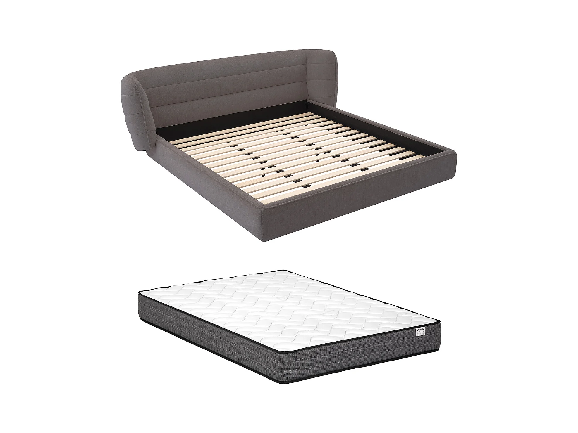 Seng 160 x 200 cm med buet sengegavl - Bouclette-stoff - Grå + Madrass - LARUMO fra Maison Céphy