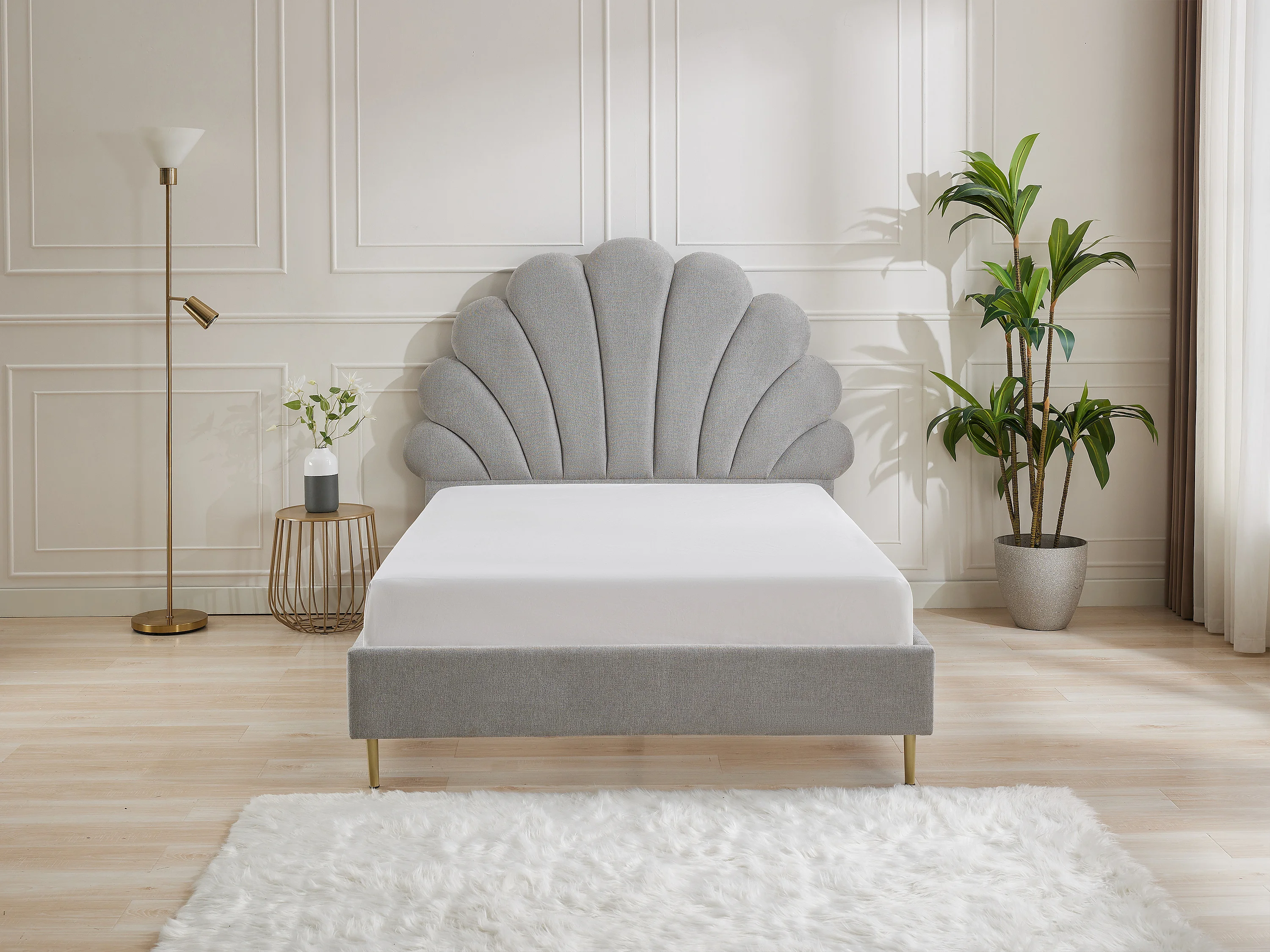 Skjellseng 140 x 190 cm - Stoff - Lysegrå + Madrass - LIVAYA