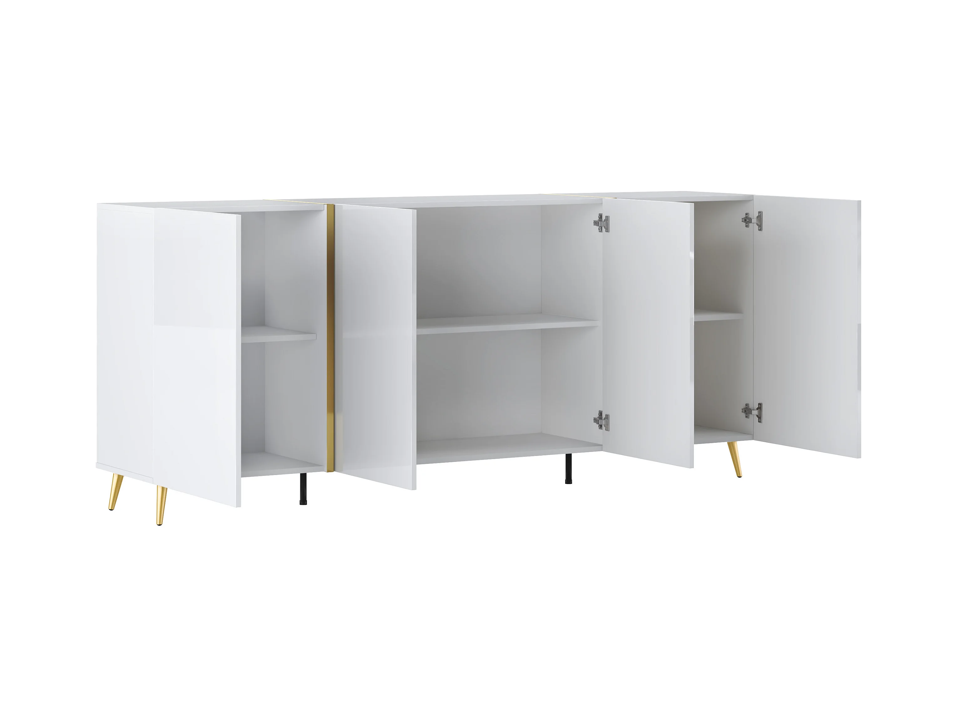 Buffet med 4 dører - 200 cm - Høyglans hvit og gull - MARZIALO