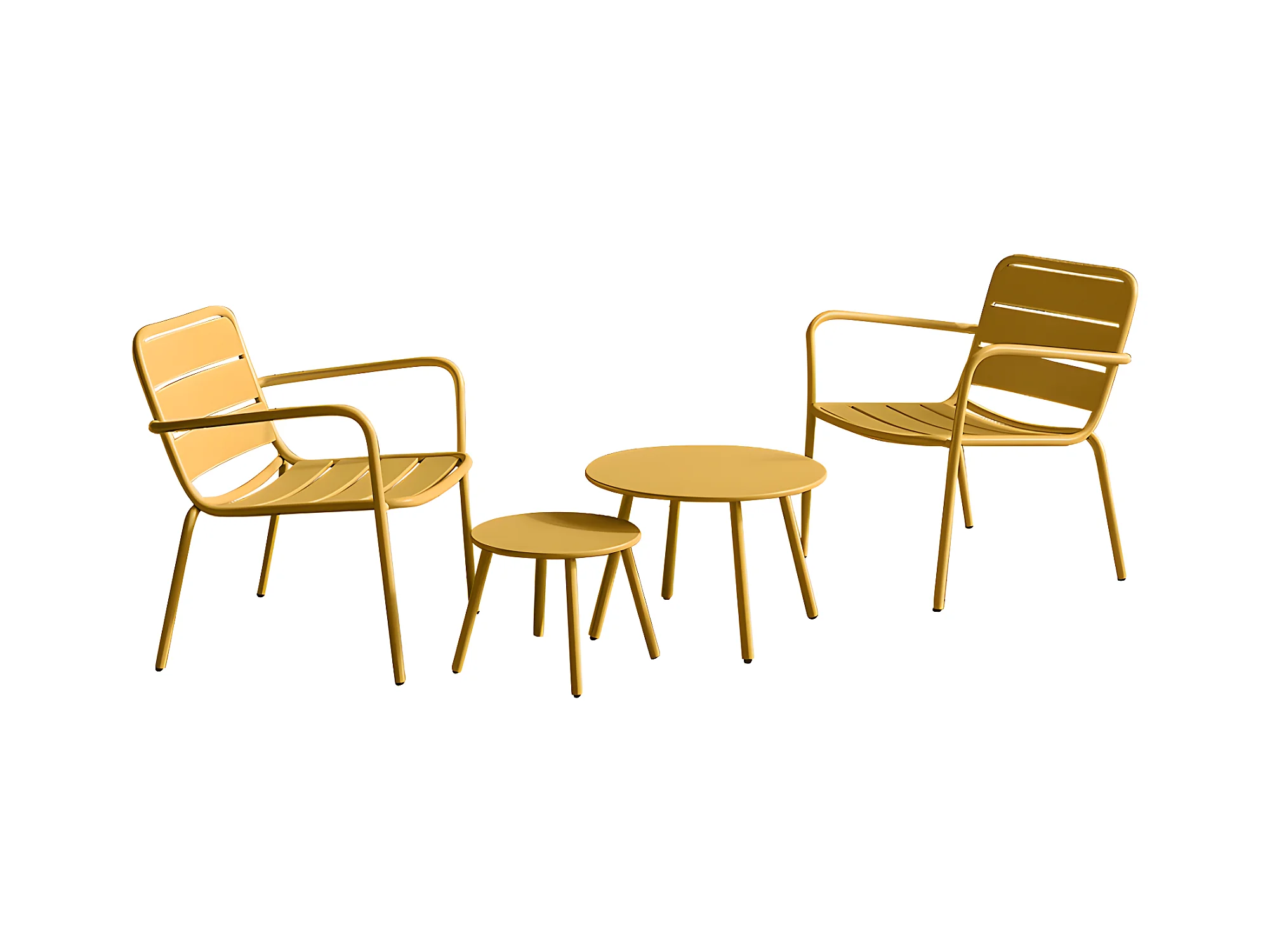 Hagesalon i metall - 2 stablede stoler og sidebord - Sennepsgul - MIRMANDE fra MYLIA