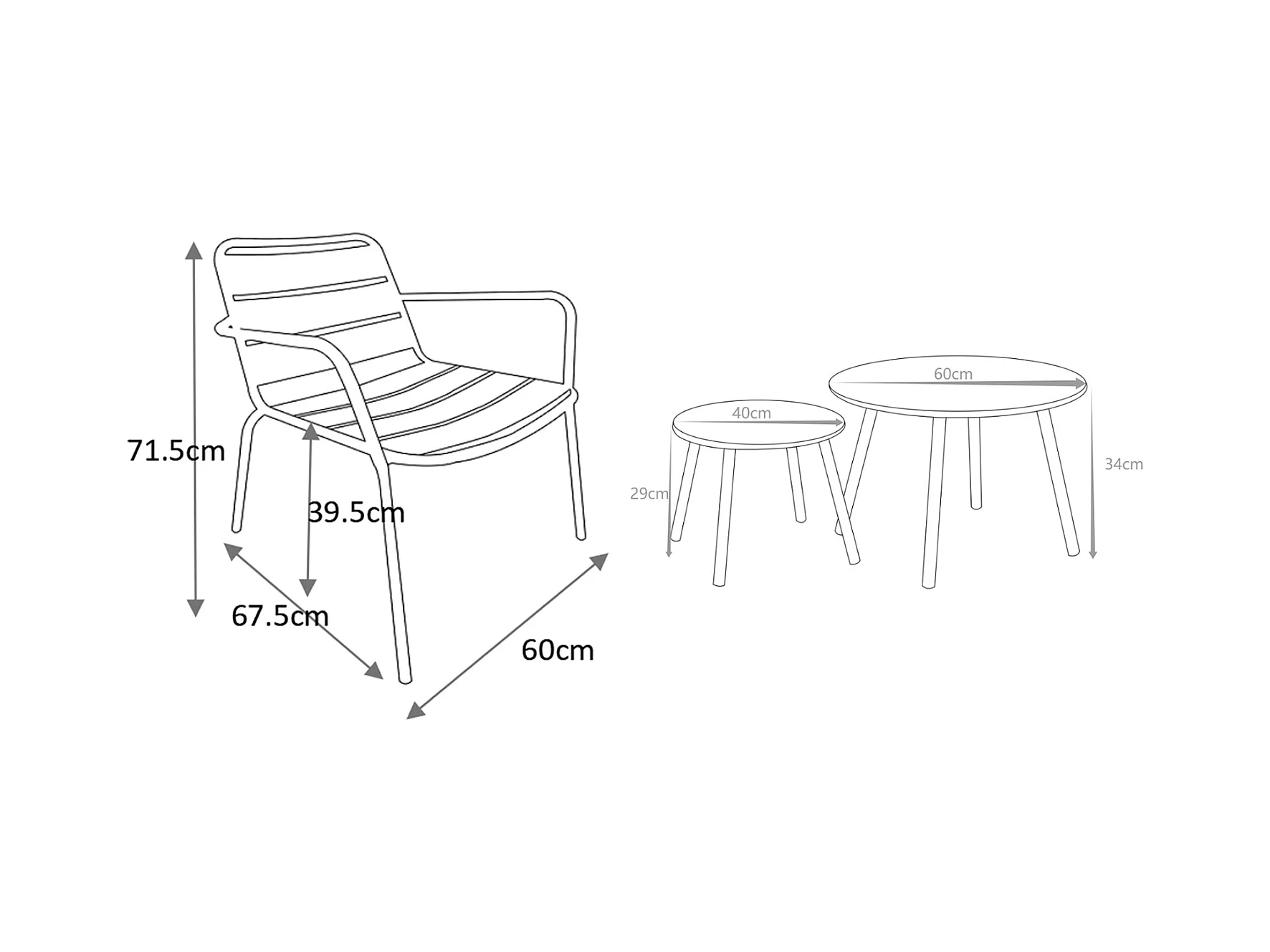 Nøstede bord + 2 lave stoler