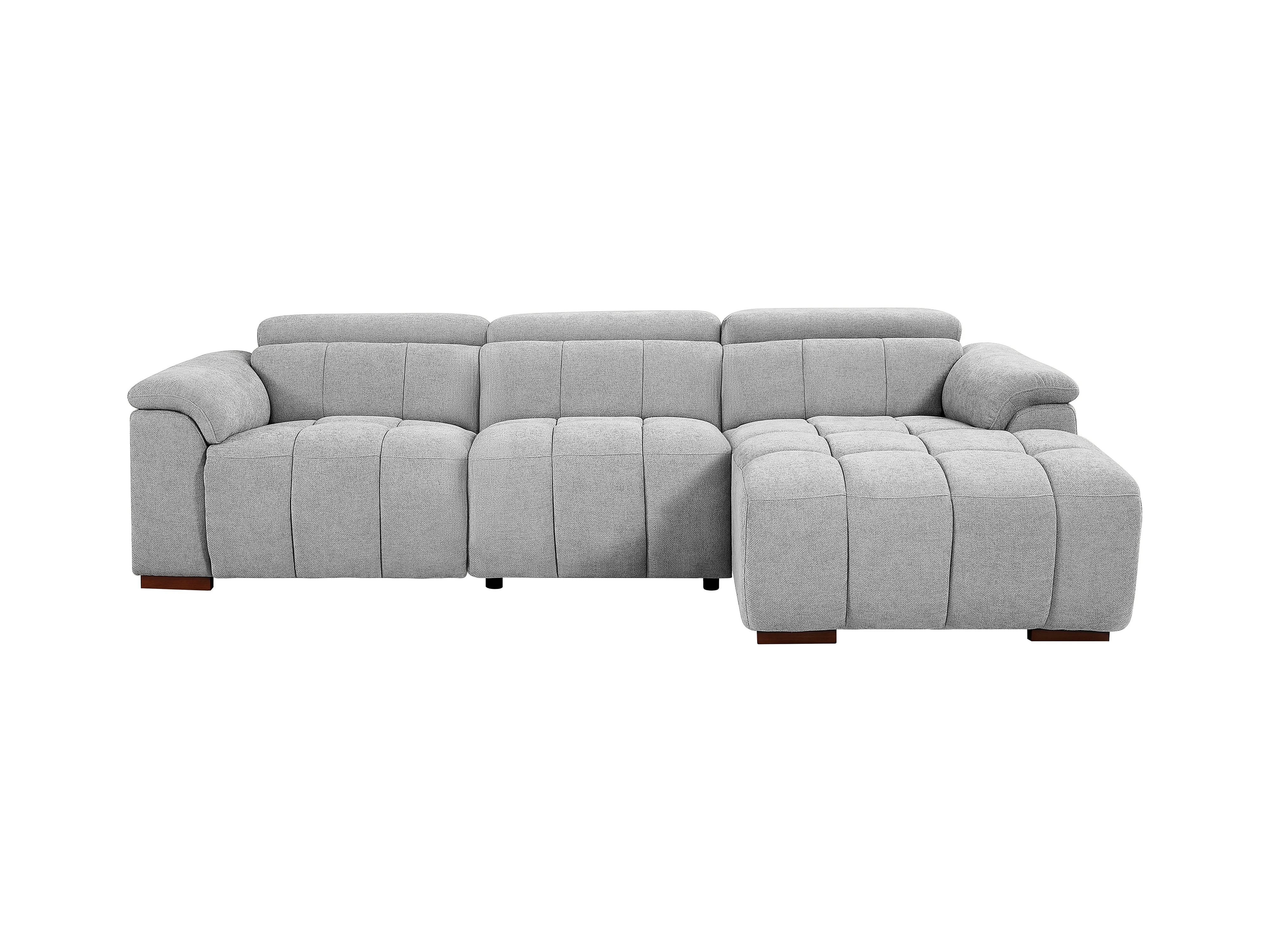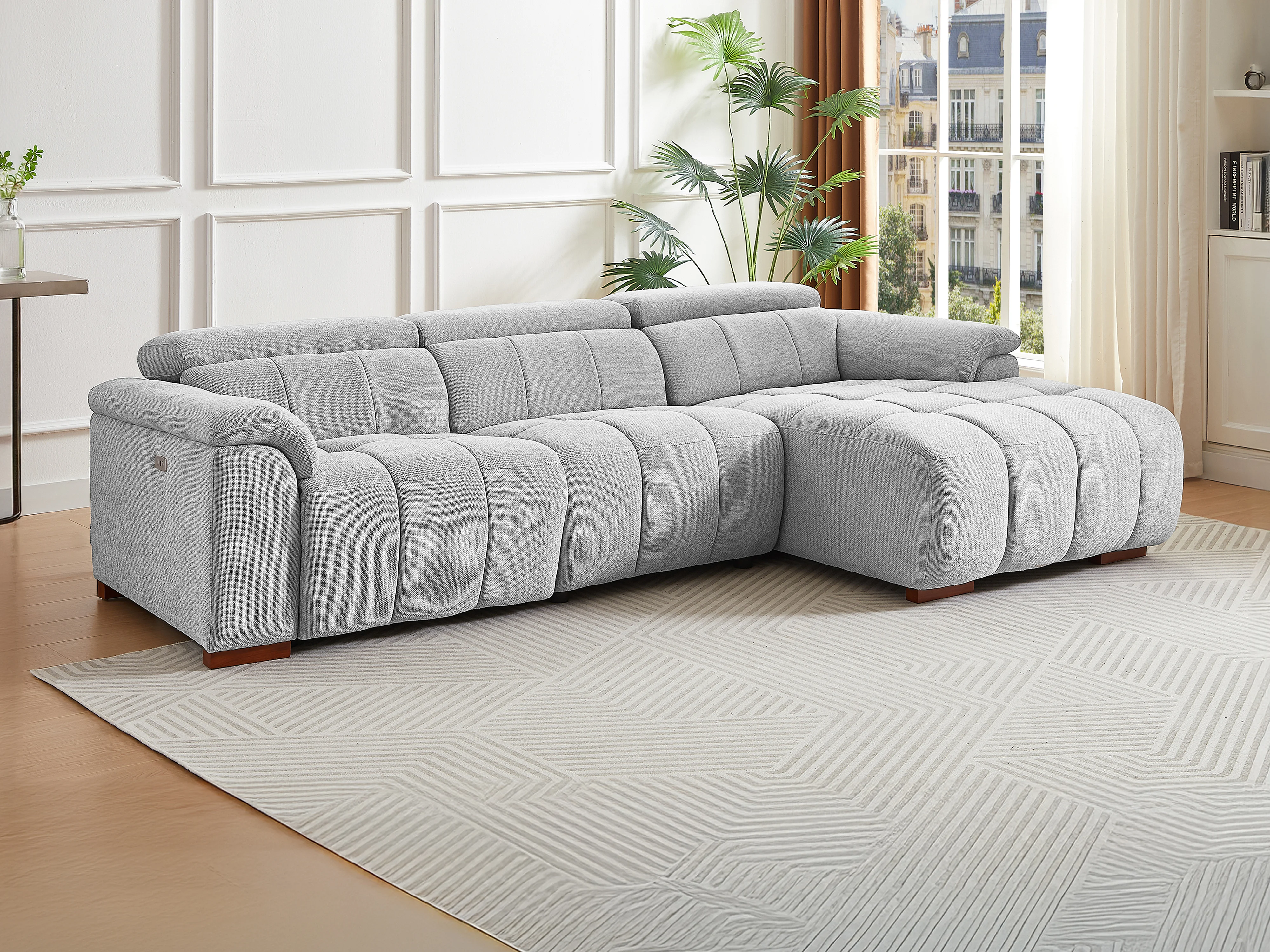 Høyre elektrisk regulerbar hjørnesofa i lysegrått stoff MOLPICA