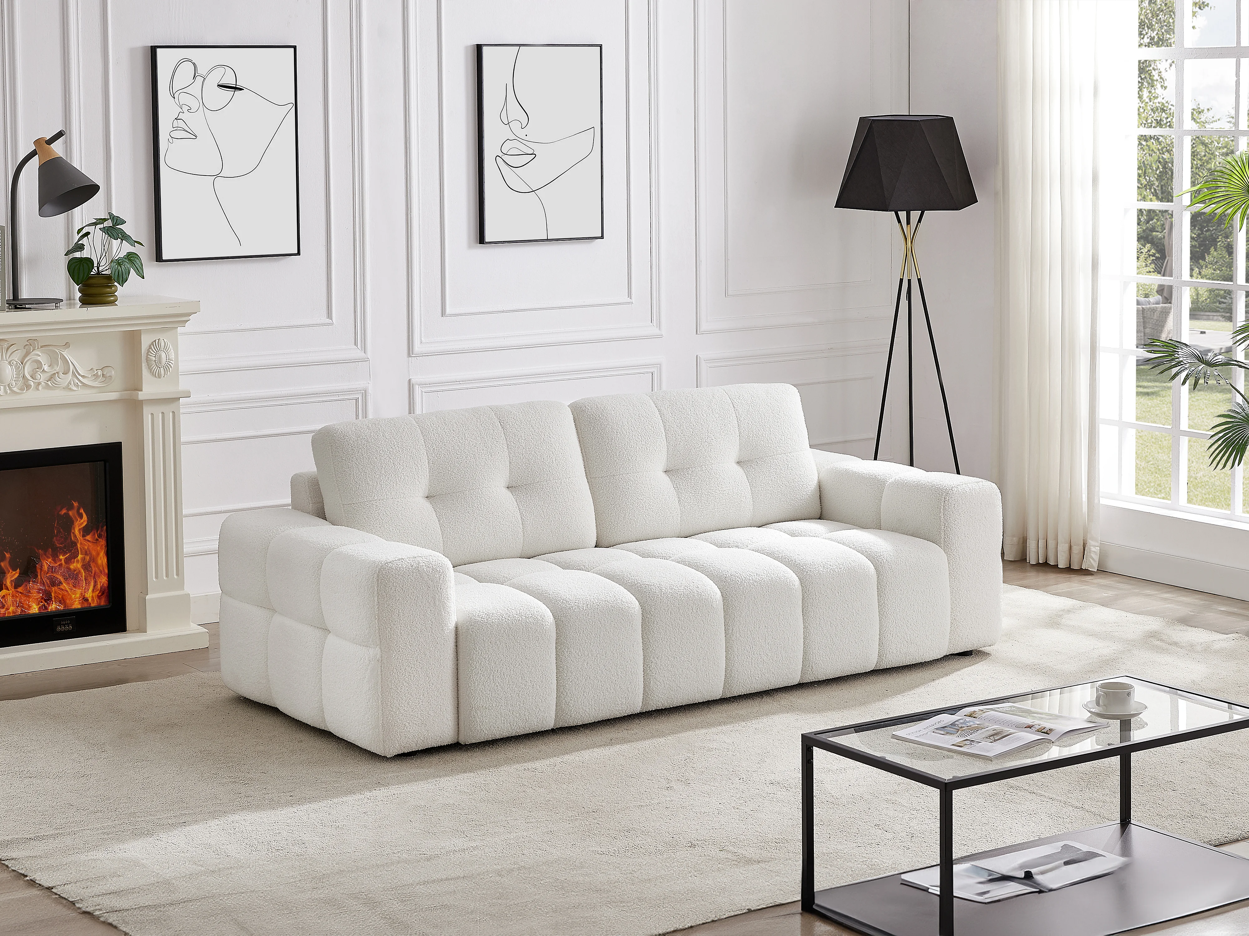 3-seters sofa i hvitt teddy-stoff SOPELANA