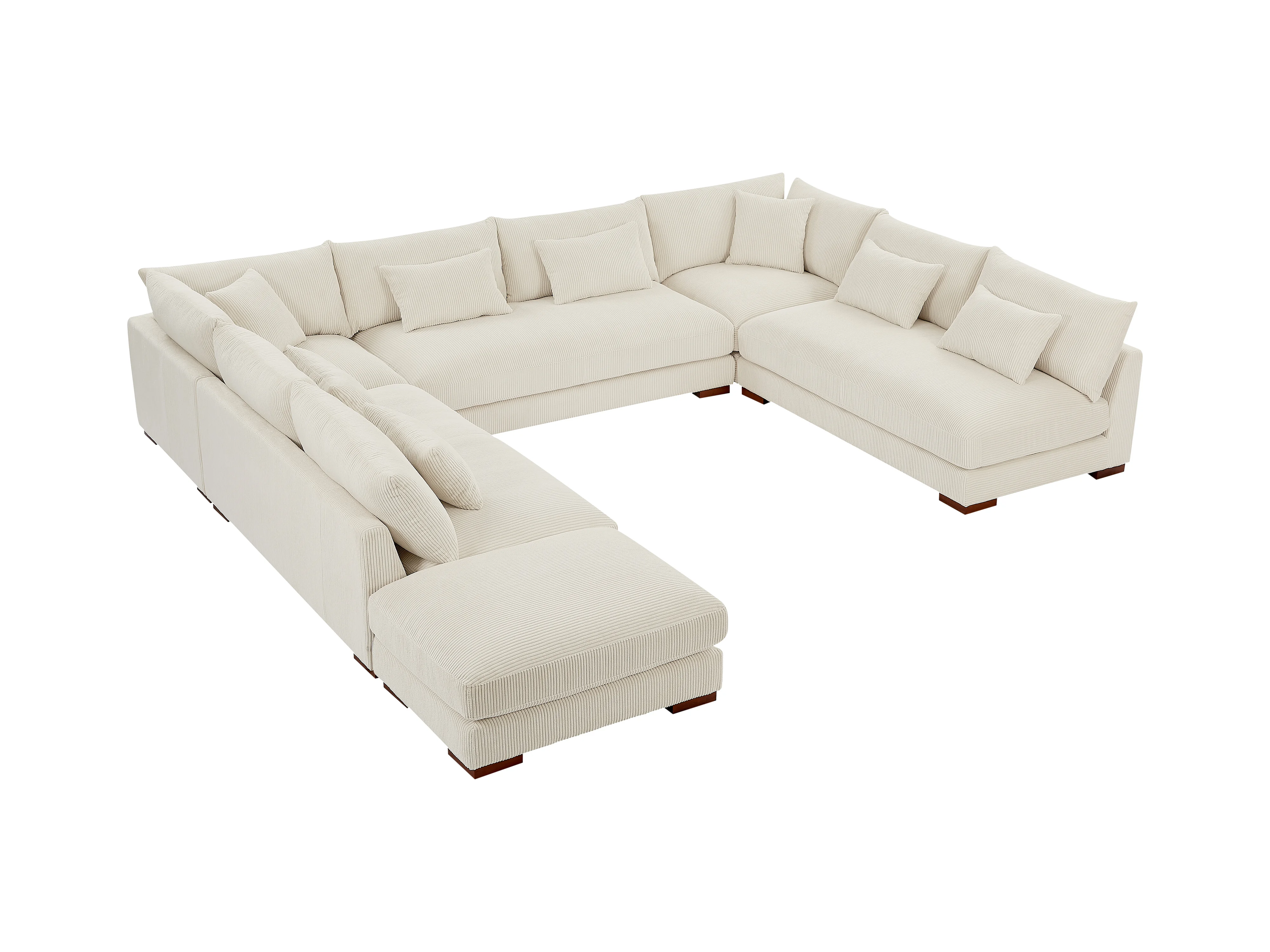 Stor panoramisk hjørnesofa med puff i beige kordfløyel SPERONE fra Pascal Morabito