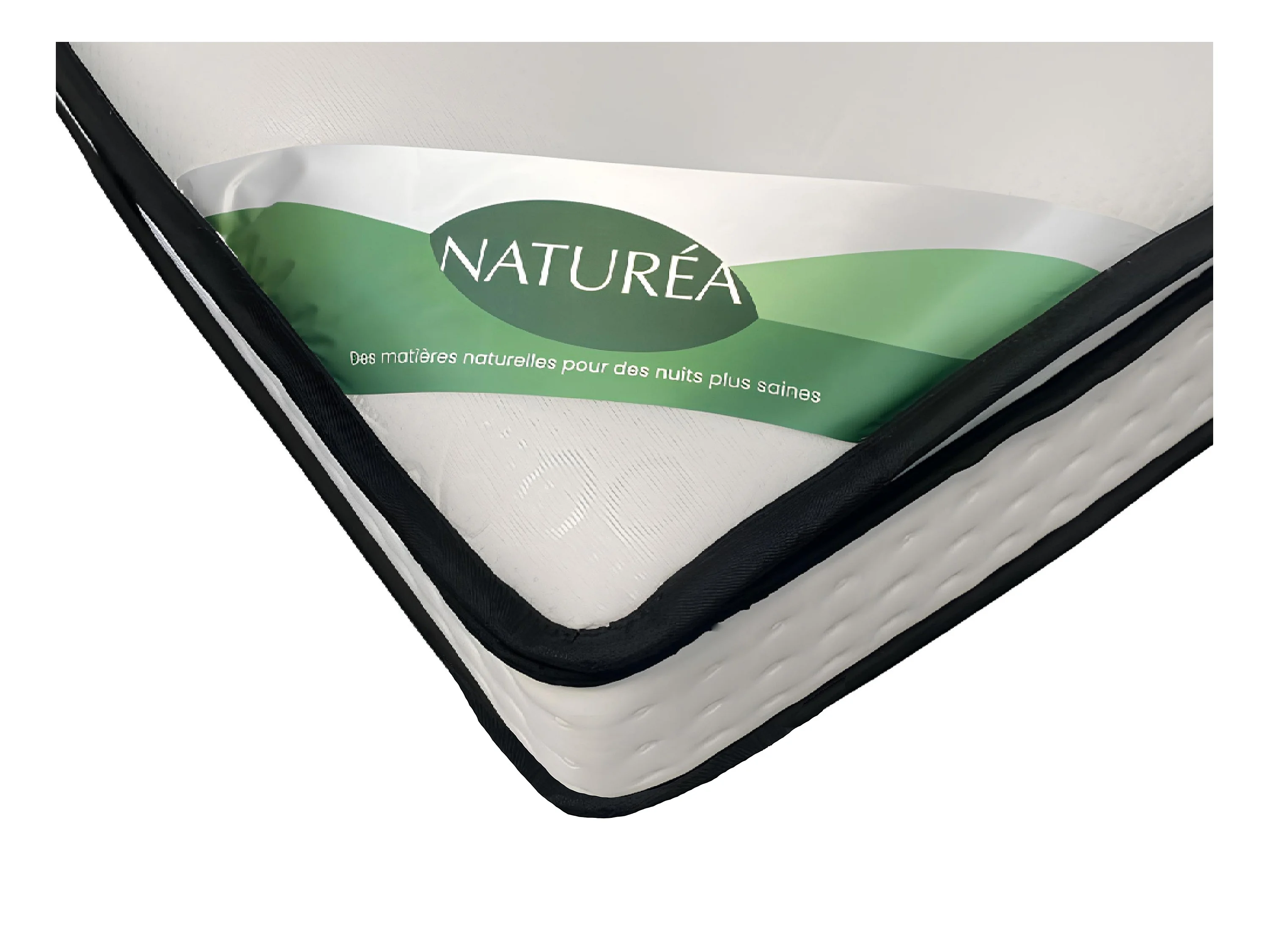 Sett 180 x 200 cm hvit oppbevaringsseng + 7-soners posefjærmadrass med integrert overmadrass og bambustrekk, tykkelse 23 cm - TAREVO fra NATUREA