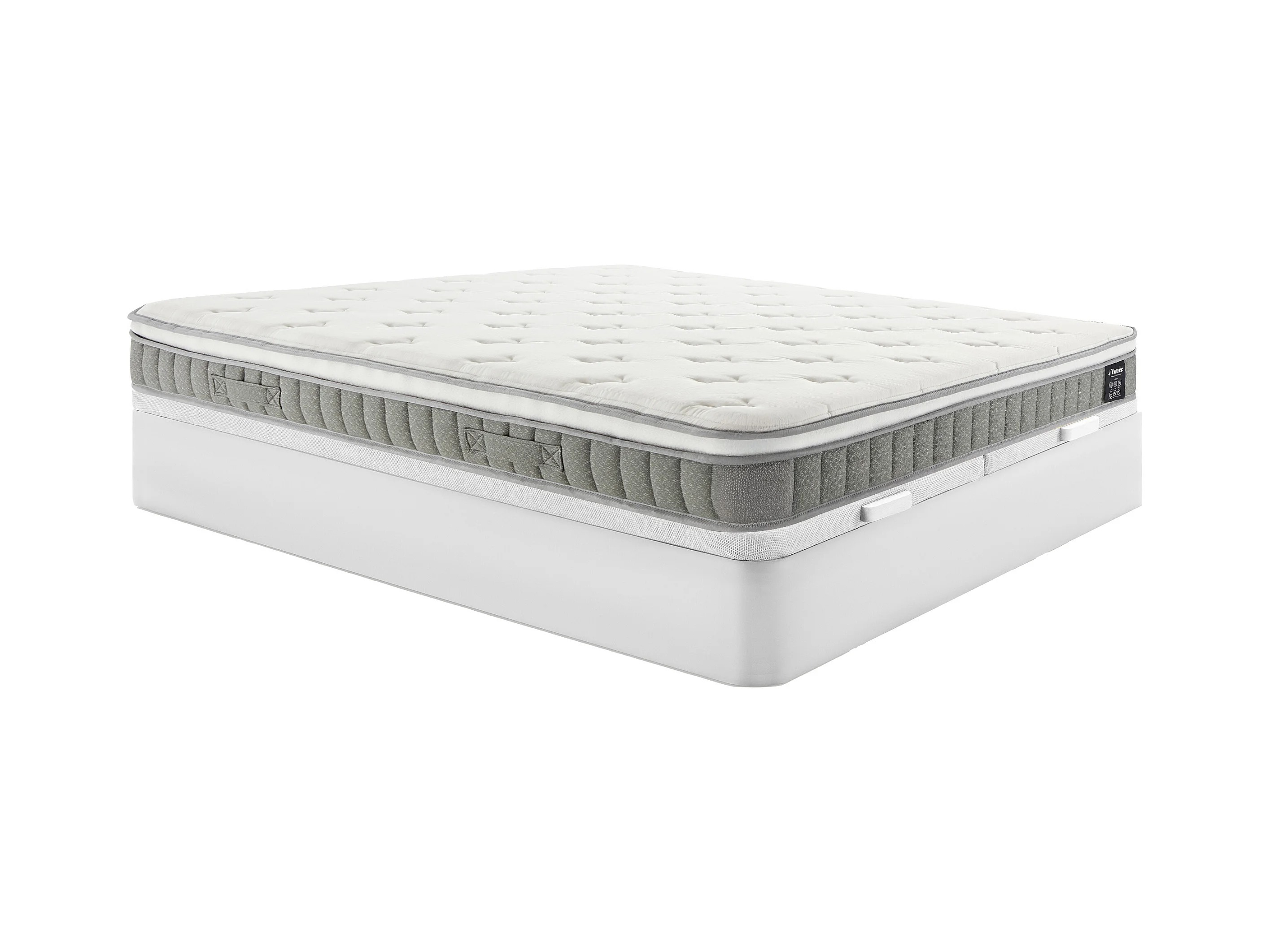 Sett 180 x 180 x 200 cm hvit oppbevaringssengeramme + pocketfjæ ressorts ensackete minne med 21 form æ + YSMÉE